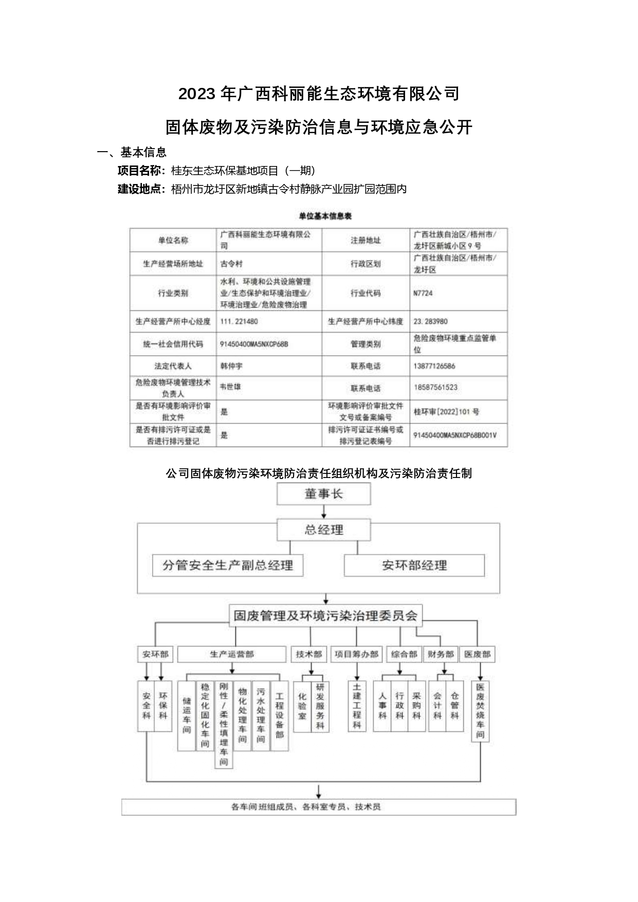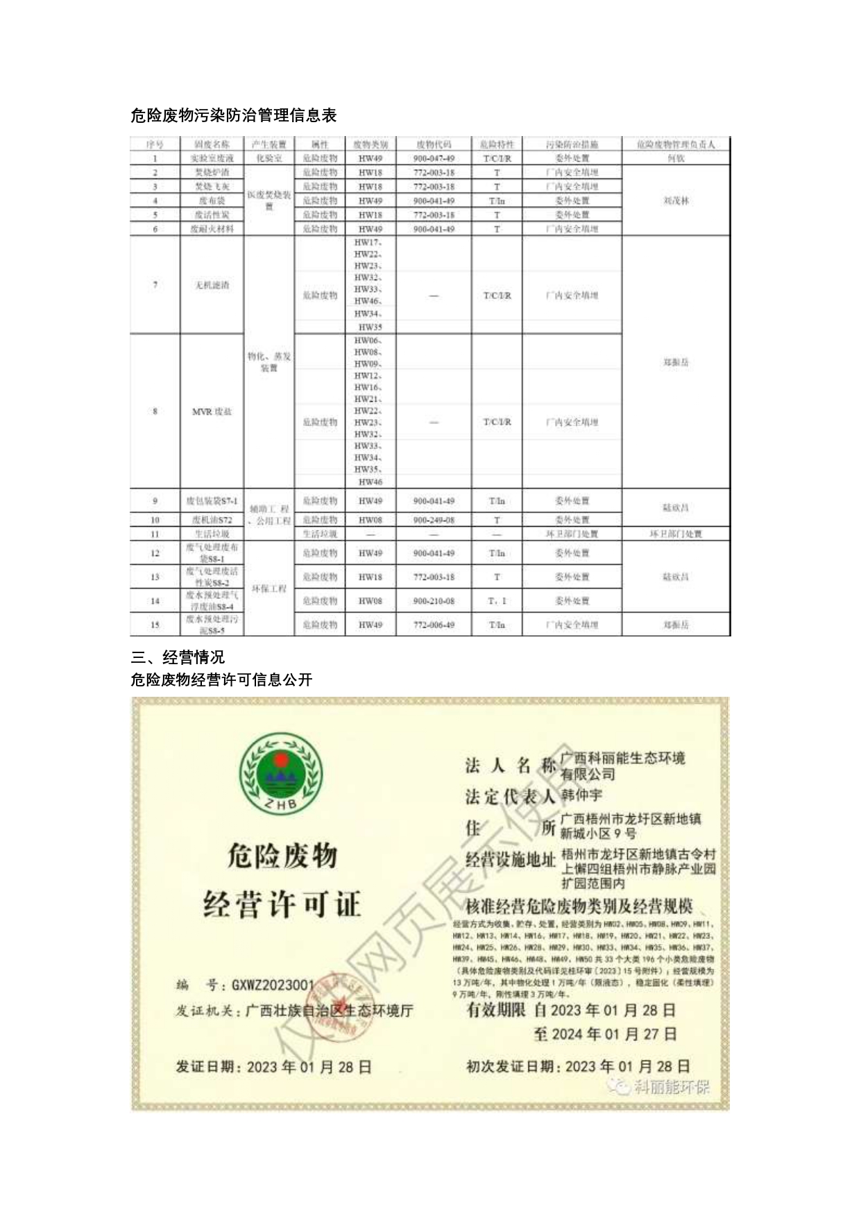 2023 年廣西科麗能生態(tài)環(huán)境有限公司 固體廢物及污染防治信息與環(huán)境應(yīng)急公開